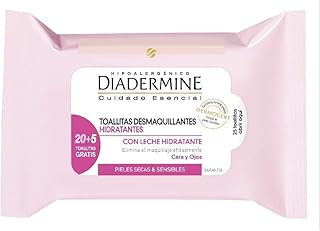 Diadermine Lingettes démaquillantes hydratantes, visage et yeux, au lait hydratant, peaux sèches et sensibles - Le paquet de 25 lingettes