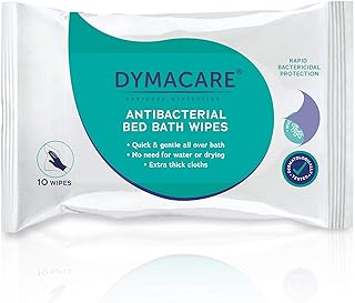 DYMACARE Lingettes Nettoyantes Antibactériennes | Lingettes Humides Sans Rinçage | Visage, Corps et Mains (Paquet de 10)