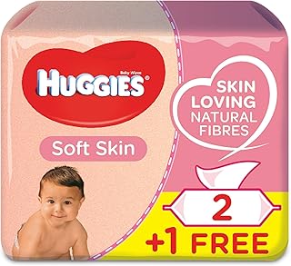 Huggies Soft Skin - 2 Paquets de 56 lingettes + 1 paquet gratuit (Total 168 lingettes)