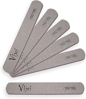 Limes à ongles émeri professionnelles 100/180 droites double face By Vixi (taille: 17,5x2 cm) Lime à polir Zèbre de pédicure et manucure pour naturel, acrylique et faux-ongles (5 x Lime à ongles)