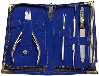 Lot de 4 étuis de manucure et pédicure en velours bleu - Pince à ongles - Coupe-cuticules - Lime à ongles double face - Lime à ongles Saphier fabriquée à Solingen