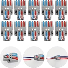 Bornes de Connexion, CTRICALVER 10 Pcs Connecteur électrique avec Levier de Fonctionnement, Compact Borne de Connexion électrique Automatique, 2 in 4 Out, avec vis de Montage