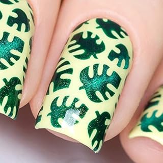 Whats Up Nails - Tropical Leaves Vinyl Stencils for Nail Art Design (1 Sheet, 12 Stencils)
