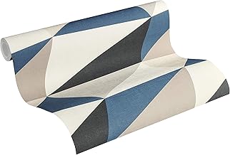 Papier Peint Géométrique New Life A.S. Création Papier peint intissé 10.05 m x 0.53 m Bleu Gris Crème Fabriqué en Allemagne 356062 35606-2
