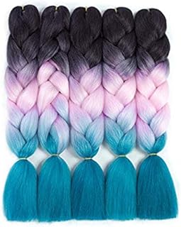 Fiber Twist Braiding Hair Synthetic Bulk Hair Jumbo Braids Three Tone Colored Ombre Braiding Hair Extensions Afro Crochet Braids Synthetic 5 Packs 24 Inch Dark-Pink-Lake Blue