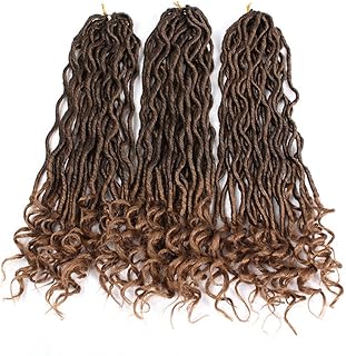 Ensemble de 6 extensions de cheveux raides de déesse, faux dreadlocks avec extrémités bouclées et effet ombré - Cheveux synthétiques en Kanekalon pour tresses et dreadlocks