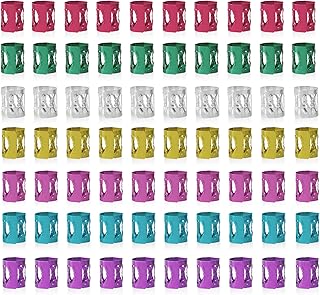 Quesuc 120 pièces Cheveux en Aluminium Anneau de l’Extensions Serrures réglables de dreadlocks, dreadlocks d’aluminium Pas facile à casser, convient aux fêtes, défilés de mode (7 couleurs mélangées)