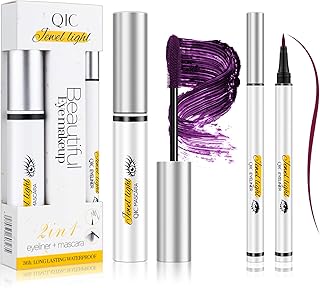 Mascara et eye-liner en fibre de soie 4D Maquillage pour les yeux imperméable (mascara violet et eye-liner rouge foncé) Allongement des cils épaississants, eye-liner liquide anti-taches longue durée