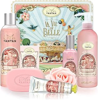 Coffret Cadeau Femmes 5 produits Un Air d'Antan : 1 Gel Douche 250ml, 1 Crème Main 25ml, 1 Savon 100g, 1 Lait Corps 200ml, 1 Eau de Toilette 55ml /Parfum: Rose & Pêche/Fêtes des Mères/Cadeau Femme