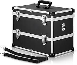 IKAYAA Malette Aluminium Valise Aluminium de Transport Rigide Boîte à Outils 3 Couches Portable Contenant de Stockage avec Poignée et Sangle Grande