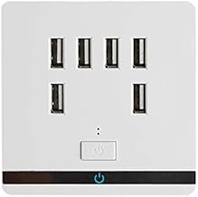fivekim 3.4A 6 Ports USB Chargeur Mural Prise de Courant Prise de Courant Plaque Panneau Interrupteur Prise USB Blanc