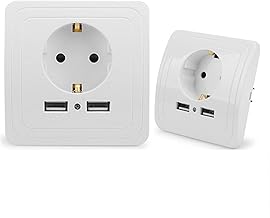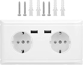 Facheya Prise double prise de courant avec prise de terre 2 prises avec ports USB et prise Schuko USB Blanc Standard 55 Prise murale pour smartphone MP3 Tablette