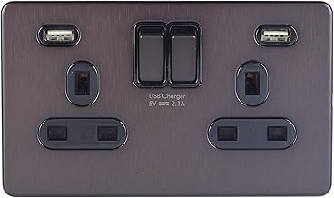 Schneider Electric Ultimate Plaque plate sans vis – Double prise de courant commutée, avec ports de charge USB, 13 A, GGBGU34202USBBDBP, bronze foncé avec insert noir