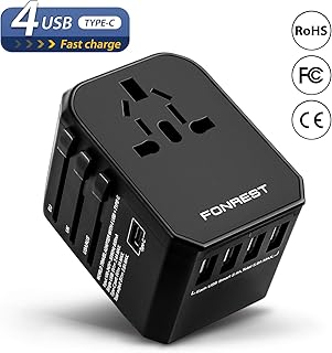Adaptateur Secteur Universel avec 4 ports USB, Type C Charge Rapide, Tout en un Prise secteur pour sèche-cheveux 1760W, Fer à friser, International Chargeur mural Prise de courant Convertisseur