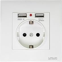 Latrans Prise Schuko encastrée avec 2 ports USB 2100 mA Idéal pour recharger tous les smartphones, tablettes, appareils photo numériques, MP3, etc. (Prise de courant avec 2 ports USB)