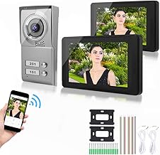 Garsent Sonnette Interphone Vidéo, 7 Pouces LCD Systèm Vidéo Interphone Visiophone Portier Support Vision Nocturne Audio/Vidéo Bidirectionnelle Kit de Sonnette Caméra pour 1/2 Maison Familiale.(EU)