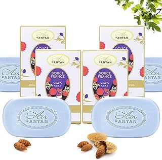 Lot 4 Savon Solide DOUCE Un Air d'Antan®/Parfum: Amande, Figue,Vétiver/Huile d'Argan Bio/Huile d'Amande Douce Bio/Savon Hydratant/Sans Paraben/Savon Corps/Savon Main/Idee Cadeau Femme/Fete Des Meres