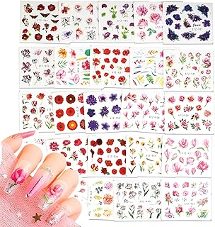 MWOOT 24 Feuilles Fleurs Stickers Ongle Autocollants de Transfert à Eau Auto-Adhésives 3D conçoivent Autocollant à Ongles pour Décoration Nail Bricolage