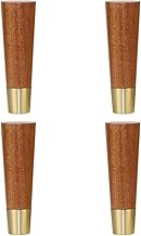 Pieds de Meubles en Chêne, Ronds Cône Pieds de Table,Paquet de 4,Pieds de Canapé,Pattes de Cabinet Chevet,Jambes de Support, Couvre-Pieds en Laiton, Couleur Bois,12cm-25cm