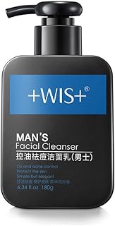 WIS Men's Face Wash Oily Skin, Nature Charcoal Purifying Facial Cleanser Deep Cleaning Sensitive Skin, Oil Control, Remove Blackheads, Anti-Acne, 185ml