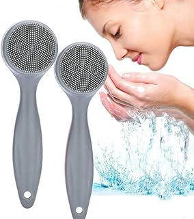Silicone Brosse de Nettoyage Visage Gommage manuel exfoliant à long manche Value 2 Pack,Silicone Cleanser Face Mark Exfoliating Brush Blackheads Remover Pour Femme Gris Rose (2 Pack Tout Gris)